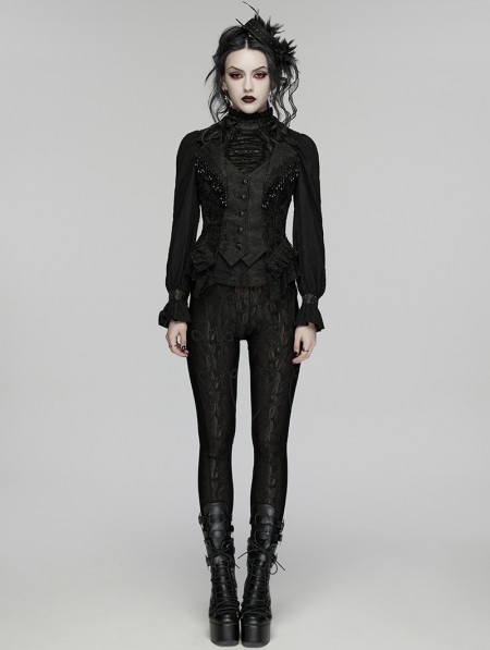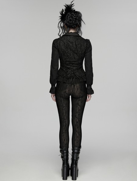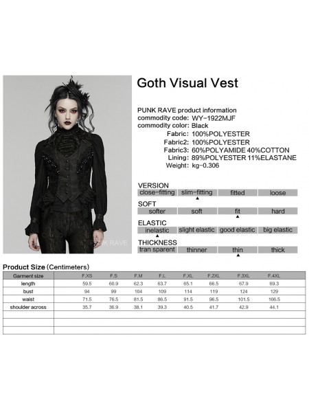 Punk Rave Black Gothic Embroidered Lace Visual Vest for Women