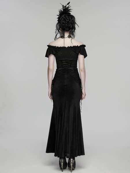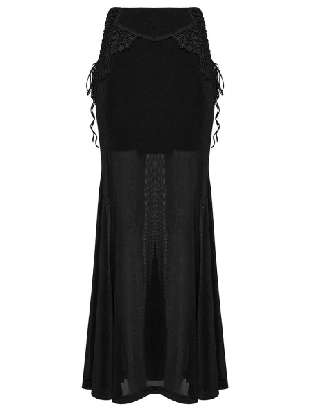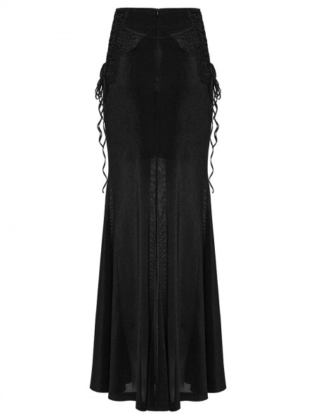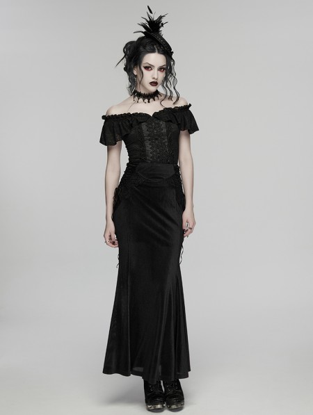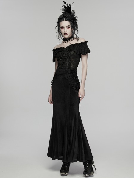 Punk Rave Black Gothic Lace Velvet Drawstring Fishtail Skirt