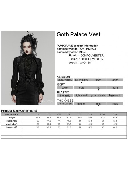 Punk Rave Black Retro Gothic Palace Underbust Corset Vest for Women