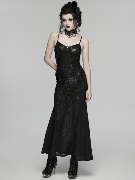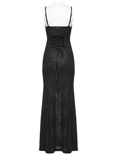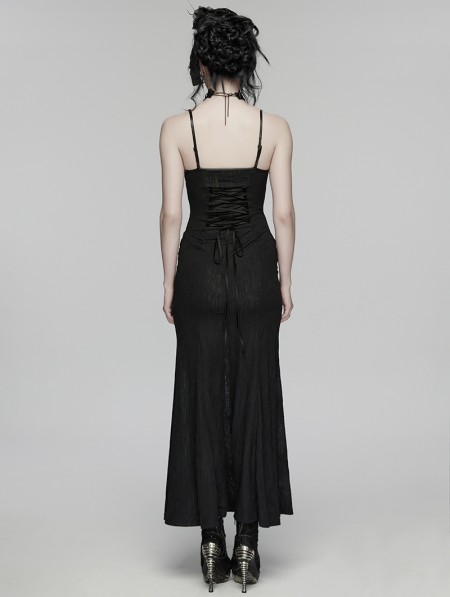 Punk Rave Black Gothic Lace Decal Sexy Fishtail Long Slip Dress