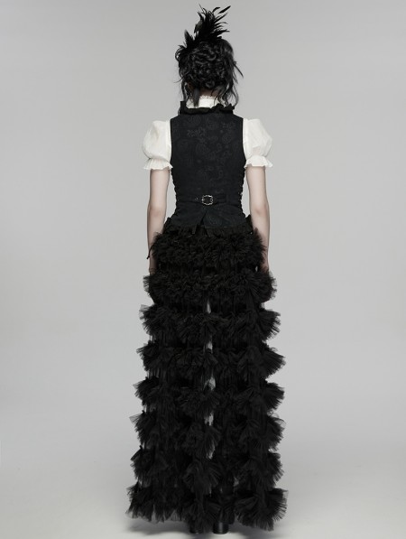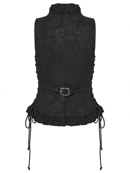 Punk Rave Black Gothic Ruffle V-Neck Drawstring Vest for Women