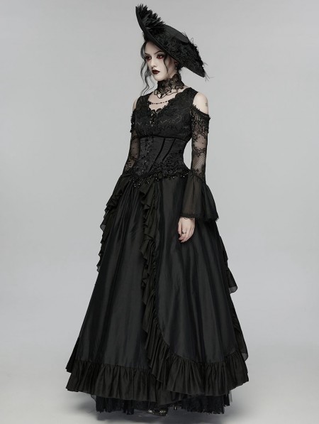 Punk Rave Black Gothic Rose Bead Tassel Corset Waistband