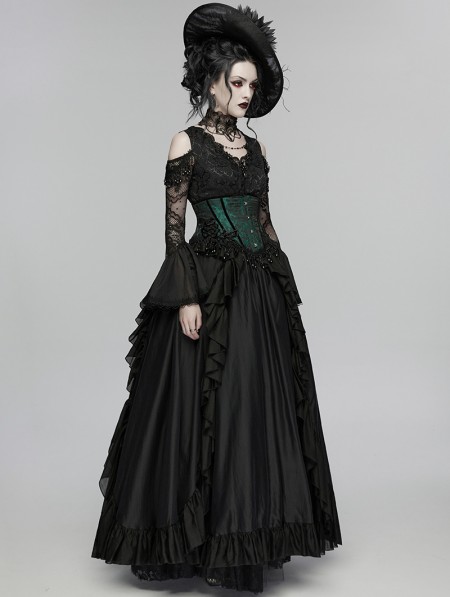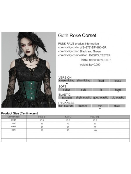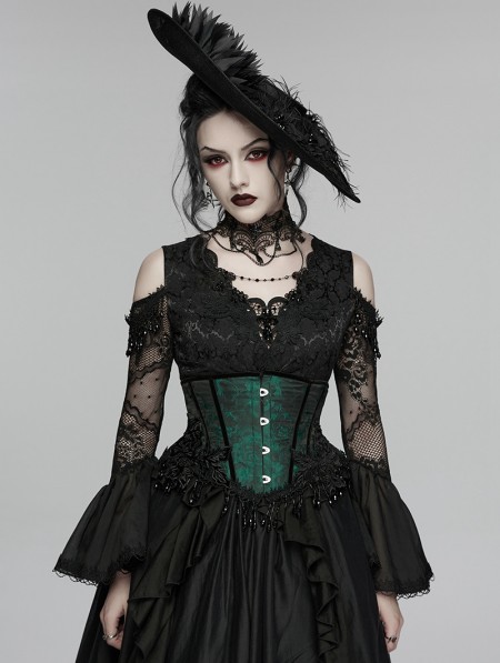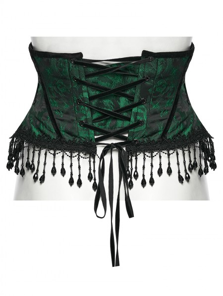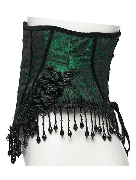 Punk Rave Black and Green Gothic Rose Bead Tassel Corset Waistband