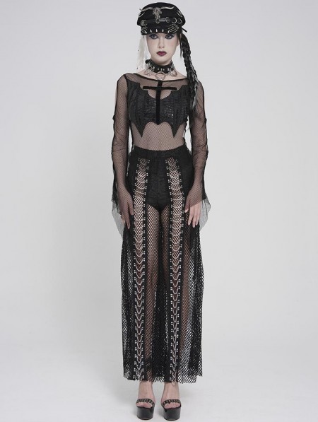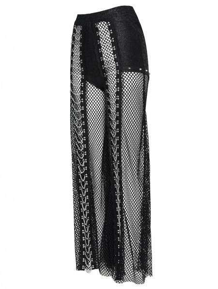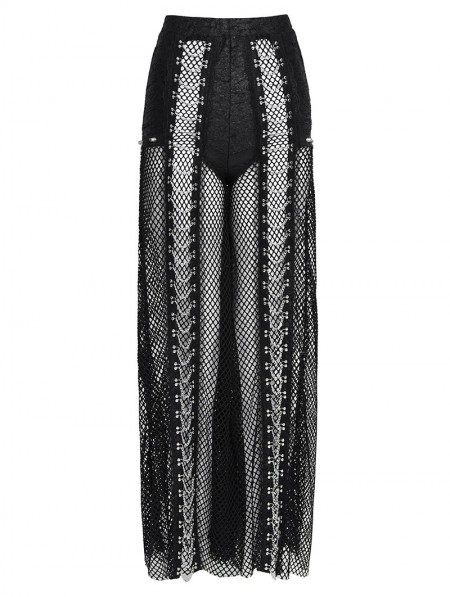 Devil Fashion Black Gothic Punk Chained Mesh Perspective Pants for Women