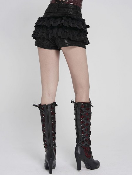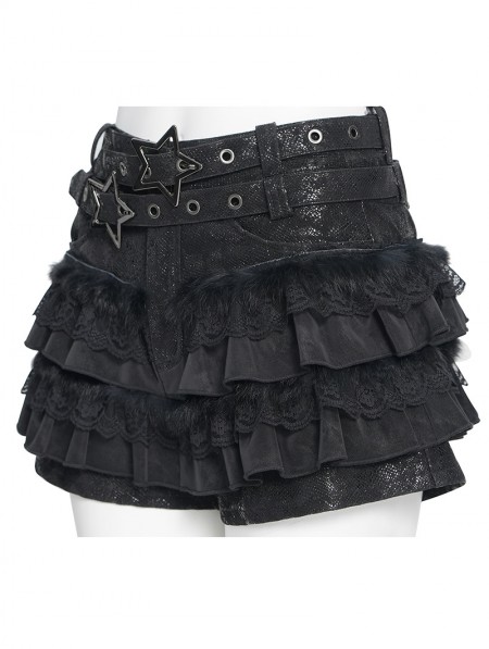 Devil Fashion Black Gothic Fur Trim Frill Hot Pants for Women