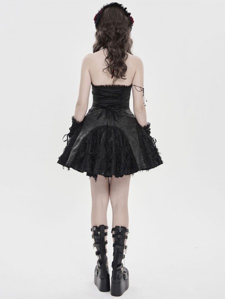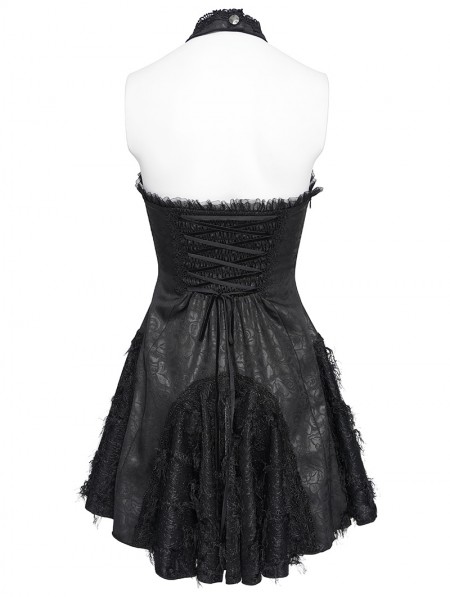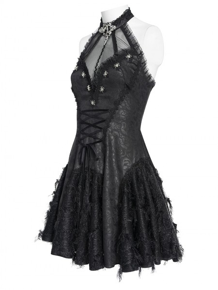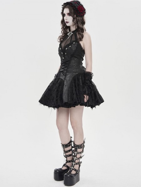 Devil Fashion Black Gothic Mesh Spliced Halter Short Party Dress