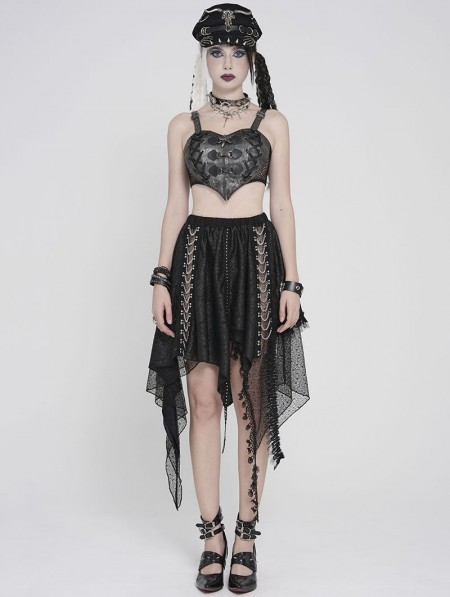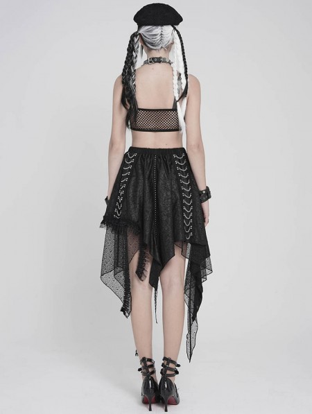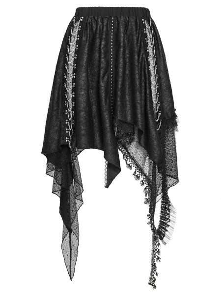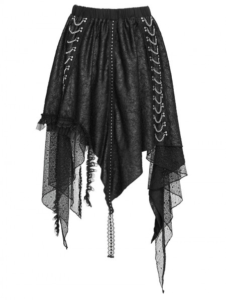 Devil Fashion Black Gothic Punk Chained Slit Irregular Ruffle Skirt