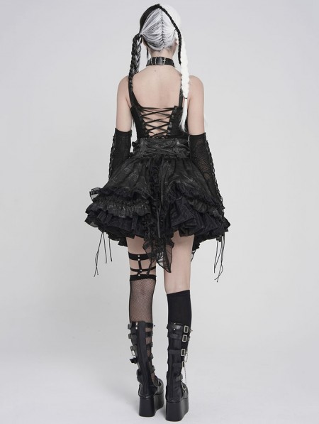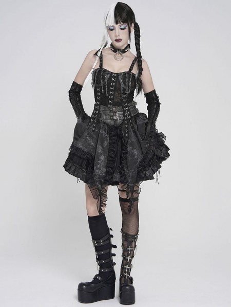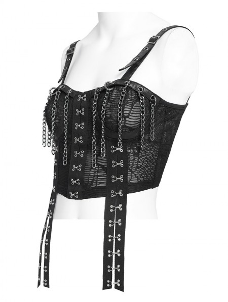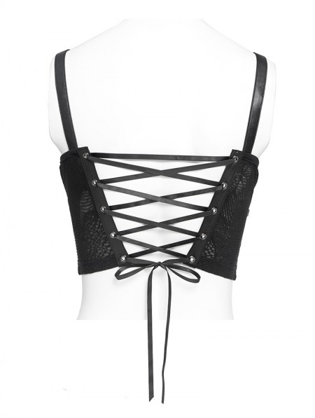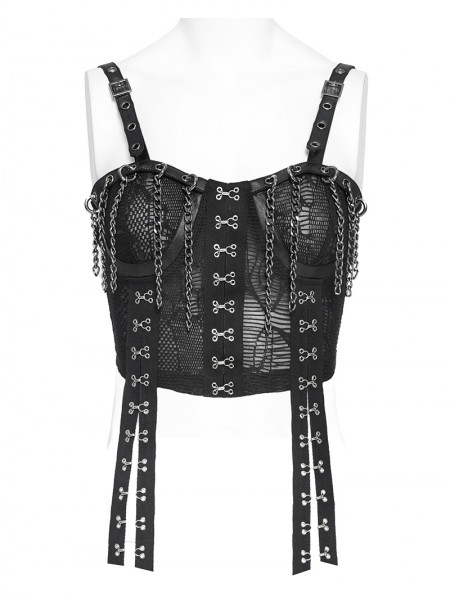 Devil Fashion Black Gothic Punk Hook and Eye Strap Corset Top for Women