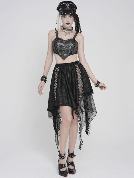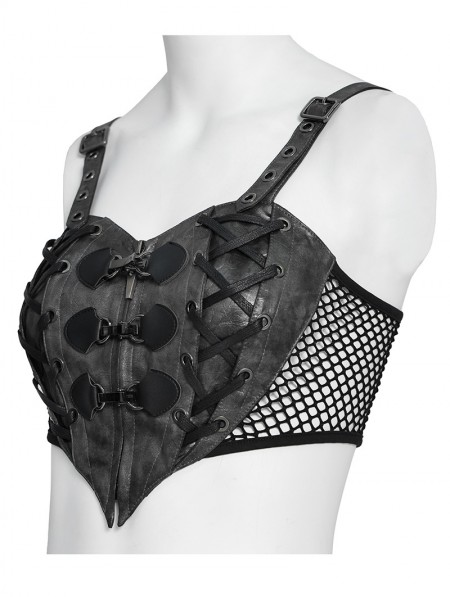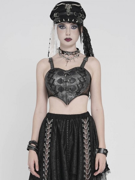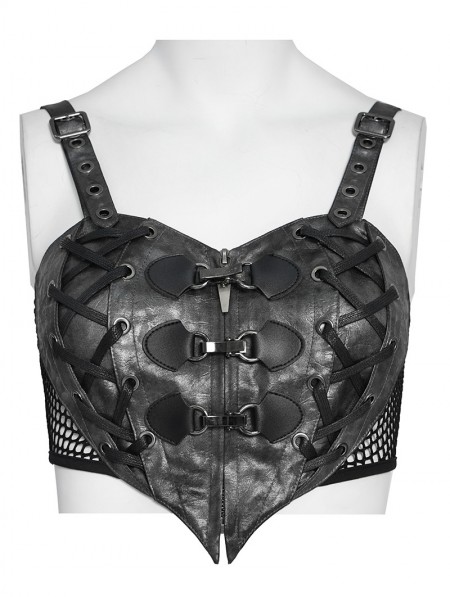 Devil Fashion Grey and Black Gothic Punk Heart Corset Top for Women