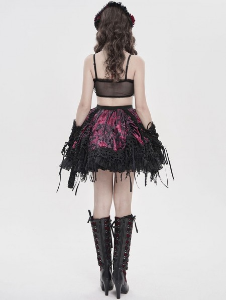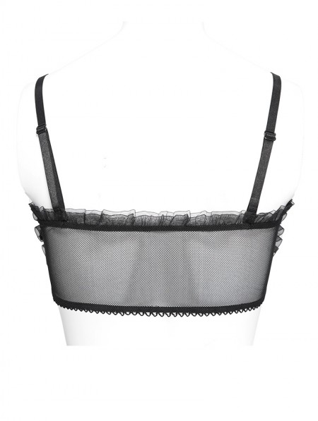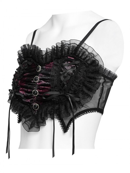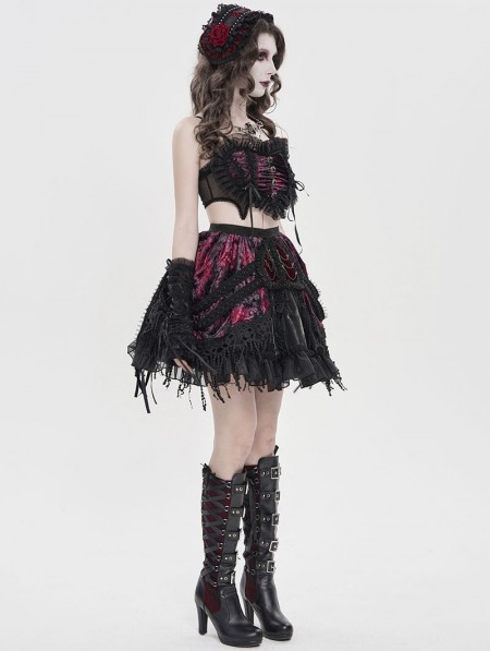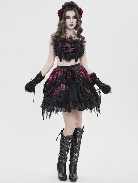 Devil Fashion Black and Red Gothic Velvet Heart Shape Cami Crop Top for Women