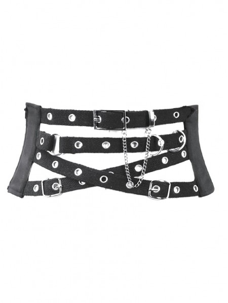 Dark in love Black Gothic Punk Utility Webbing Waist Cincher Belt