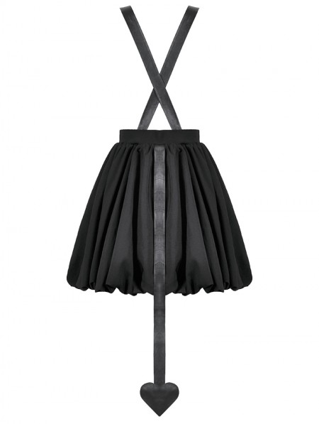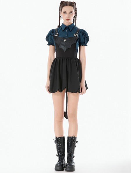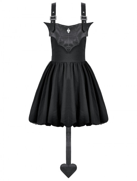 Dark in love Black Gothic Bat Wing Buckle Strap Short Dress with Tail