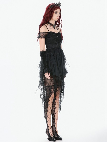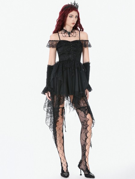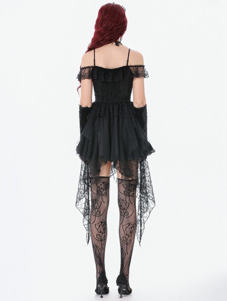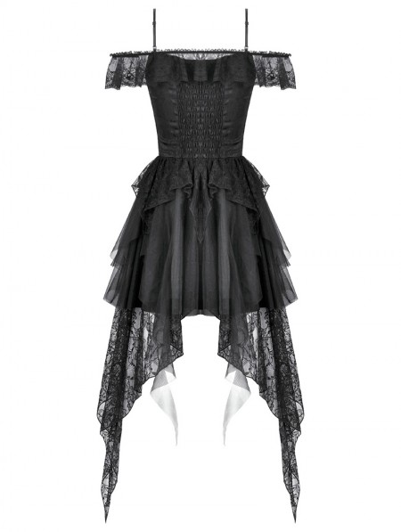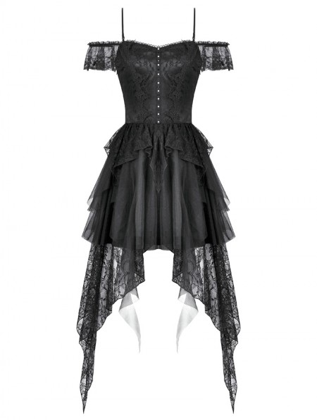 Dark in love Black Gothic Baroque Lace Tiered Off-Shoulder Party Dress