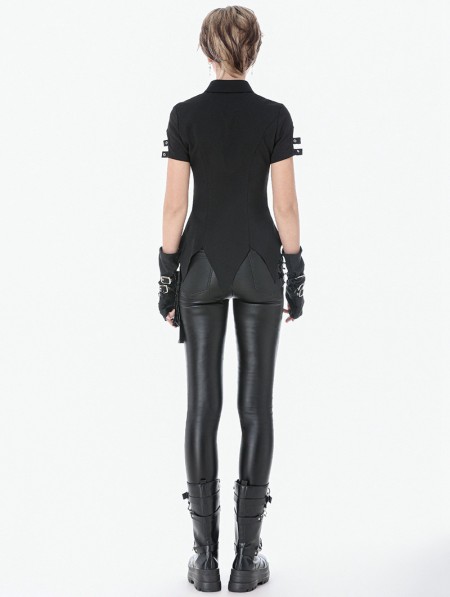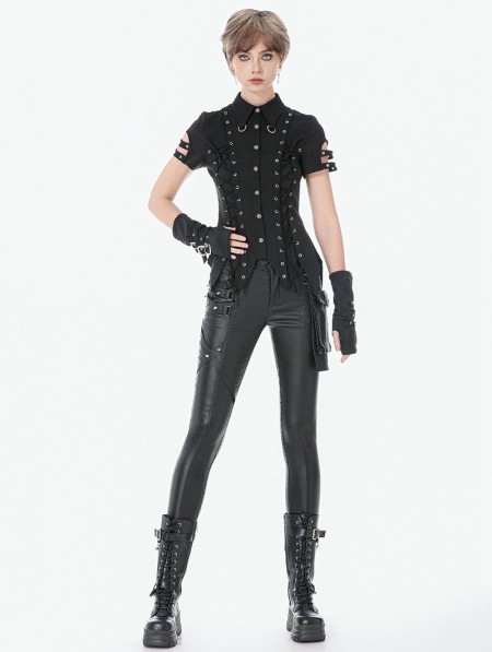 Dark in love Black Gothic Cut Out Lace-Up Eyelet Punk Shirt for Women