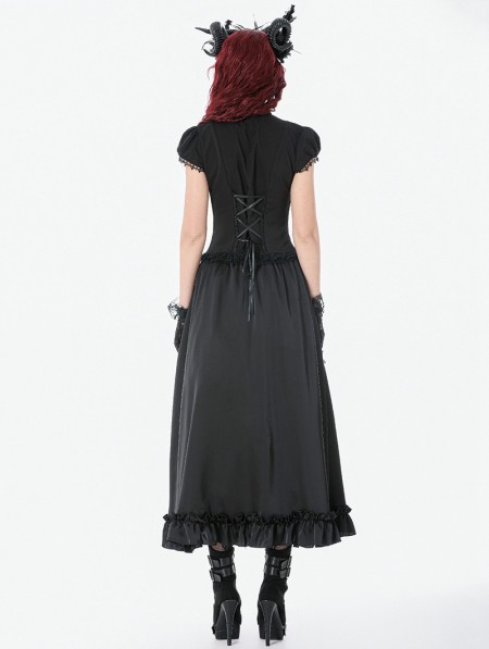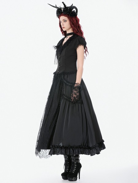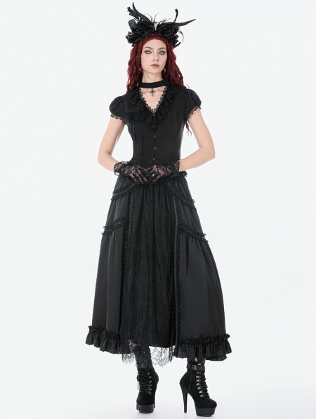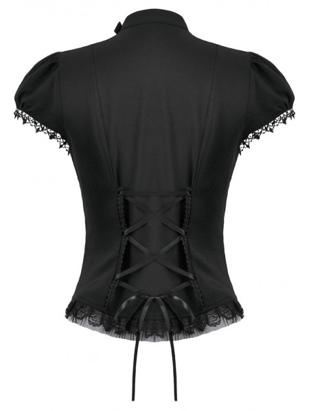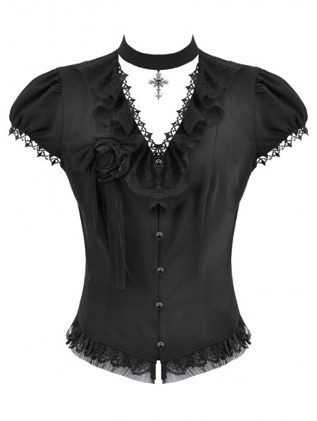 Dark in love Black Gothic Cut Out V-Neck Short Sleeve Blouse for Women