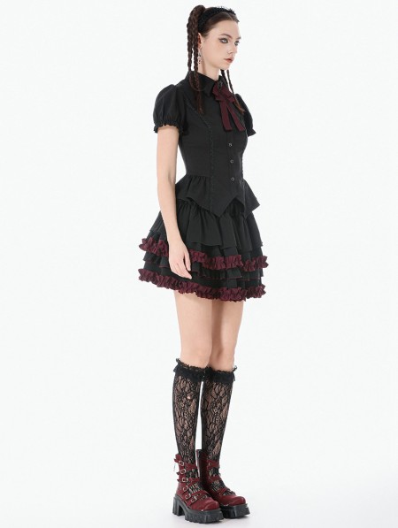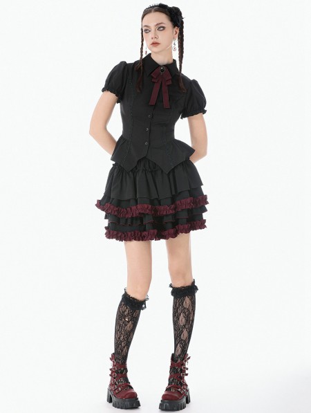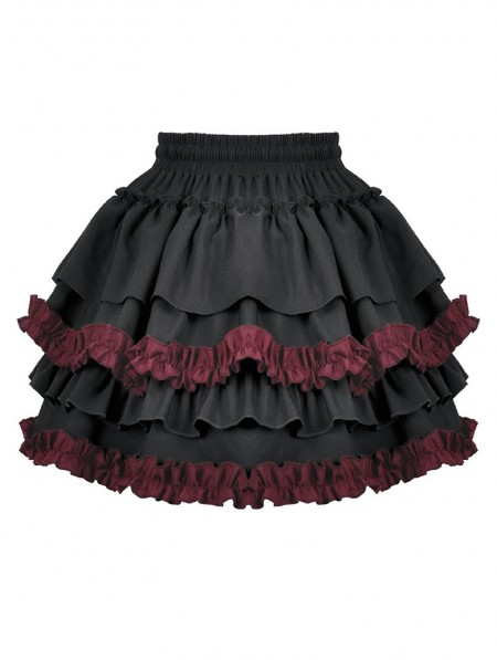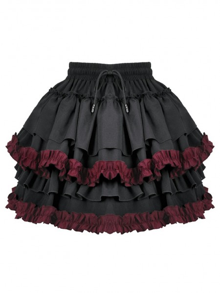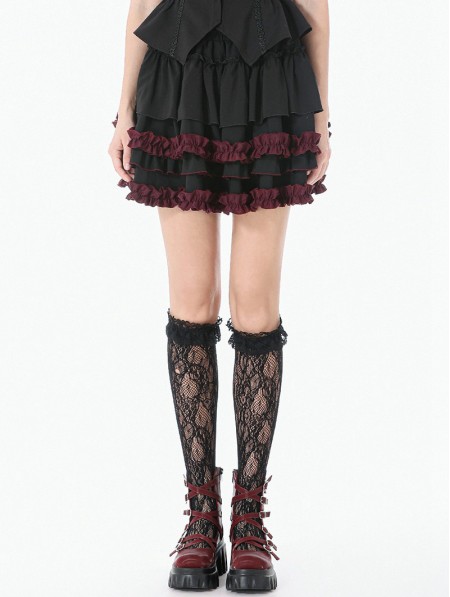 Dark in love Black and Red Gothic Tiered Ruffle Short Skirt