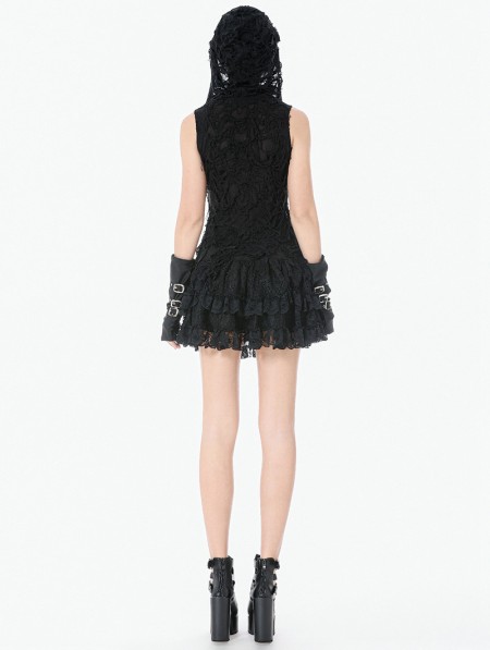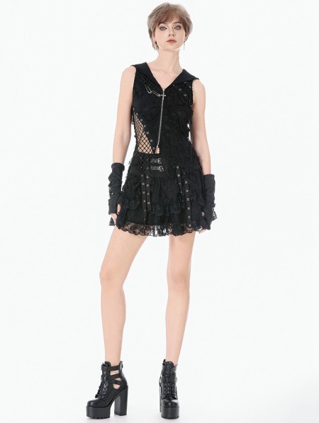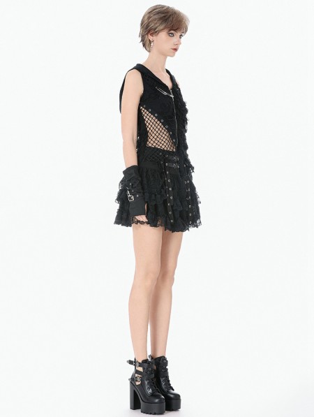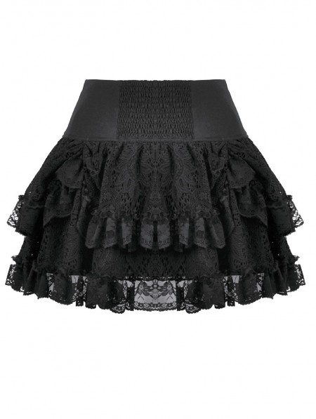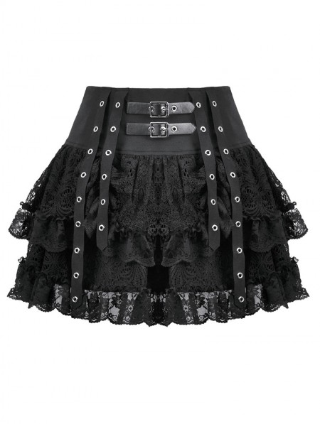 Dark in love Black Gothic Punk Eyelet Lace Layered Mini Skirt