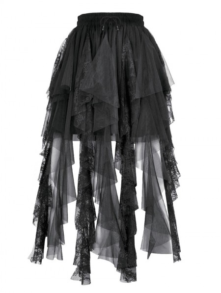 Dark in love Black Gothic Dark Fairy Layered Lace Mesh Skirt