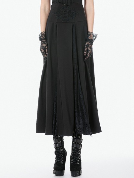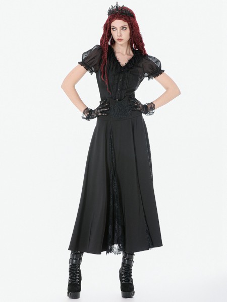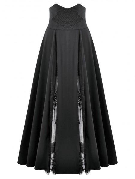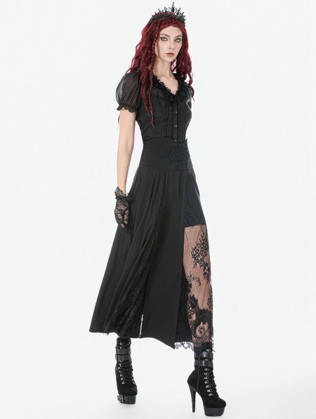 Dark in love Black Elegant Gothic Floral Mesh Spliced Long Skirt