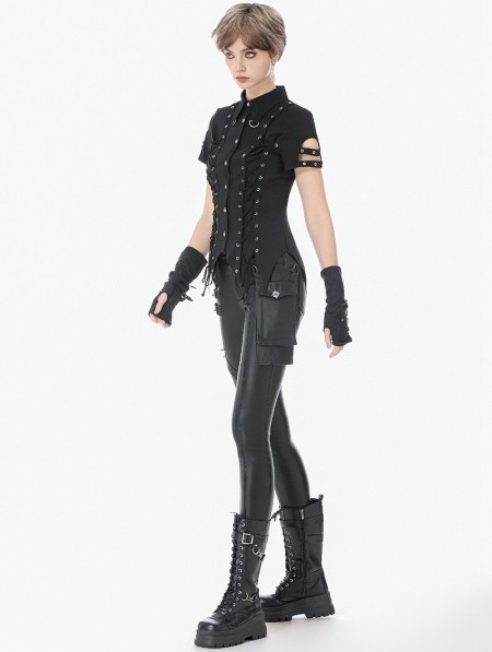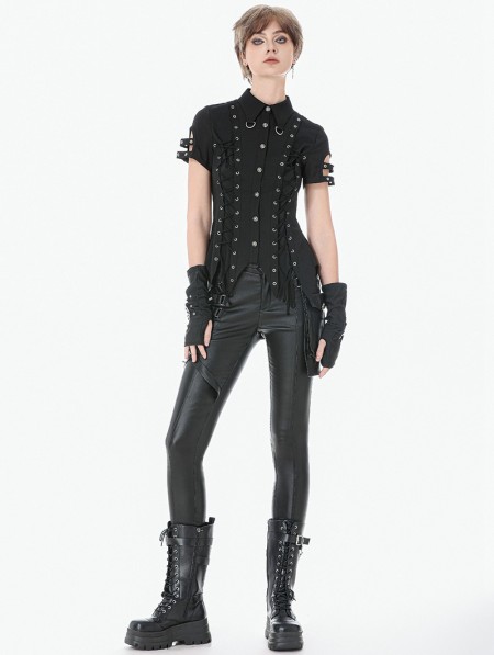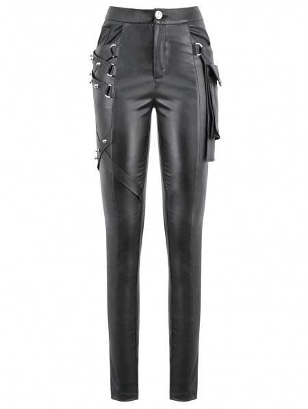 Dark in love Black Gothic Punk Asymmetric Studded Pants for Women