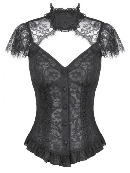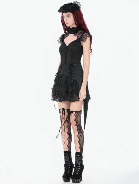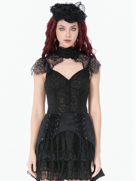 Dark in love Black Floral Lace Gothic Bolero Corset Top for Women