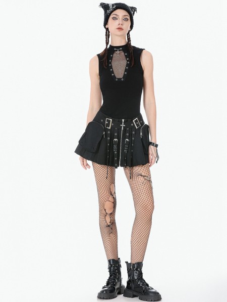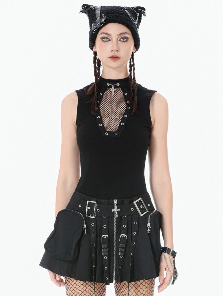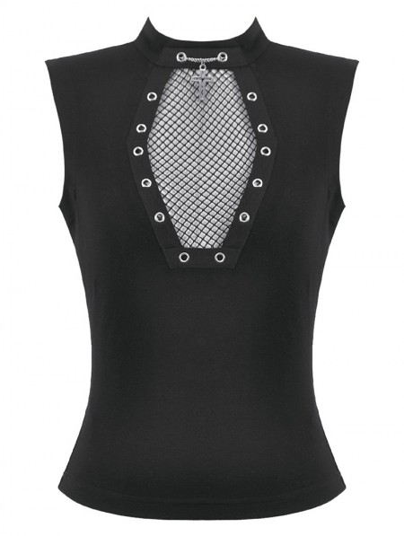 Dark in love Black Gothic Punk Coffin Mesh Panel Tank Top for Women