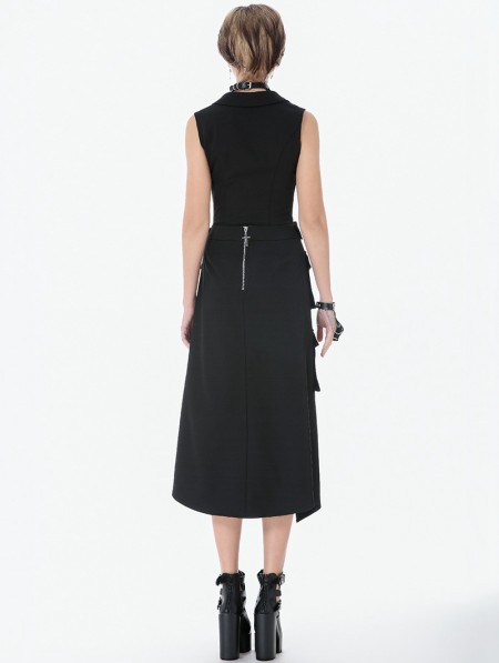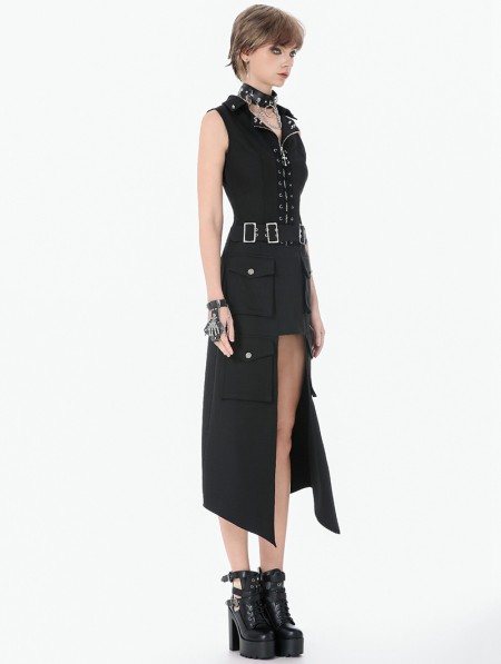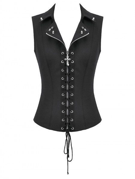 Dark in love Black Gothic Punk Studded Lace-Up Vest Top for Women