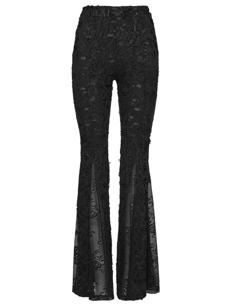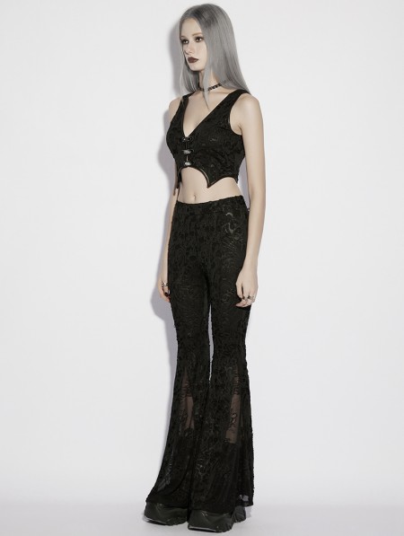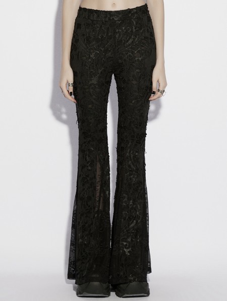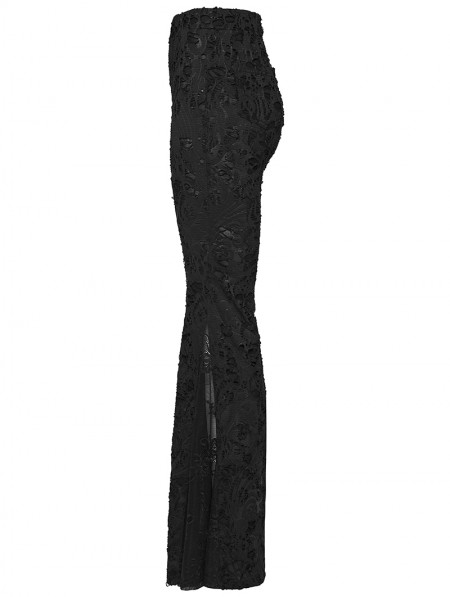 Punk Rave Black Gothic Jacquard Lace Flared Pants for Women