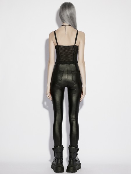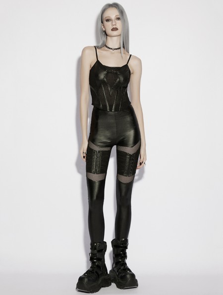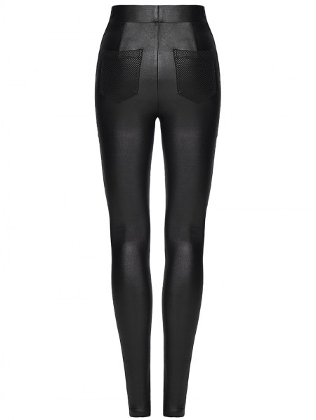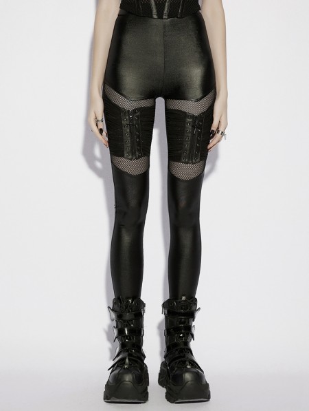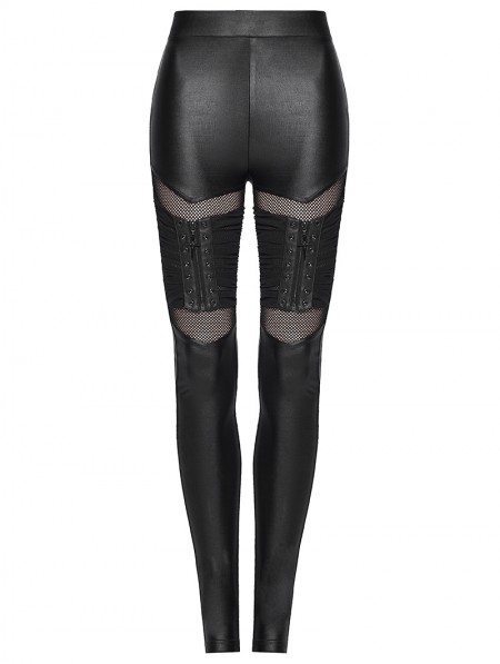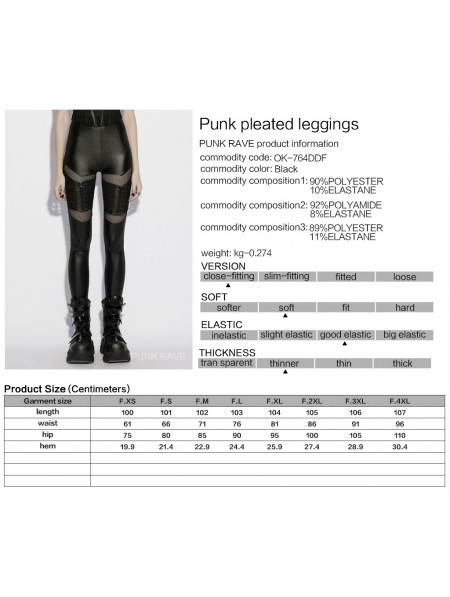 Punk Rave Black Gothic Punk Pleated Mesh Splicing Leggings for Women
