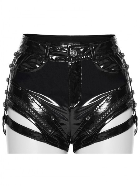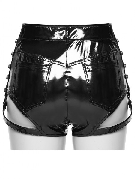 Punk Rave Black Gothic Punk Cutout Patent Leather Shorts for Women