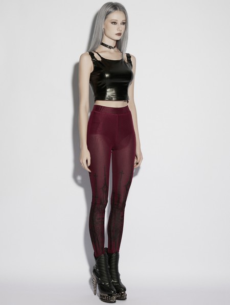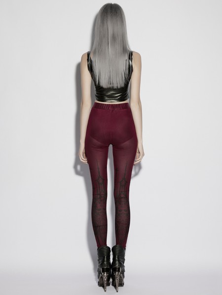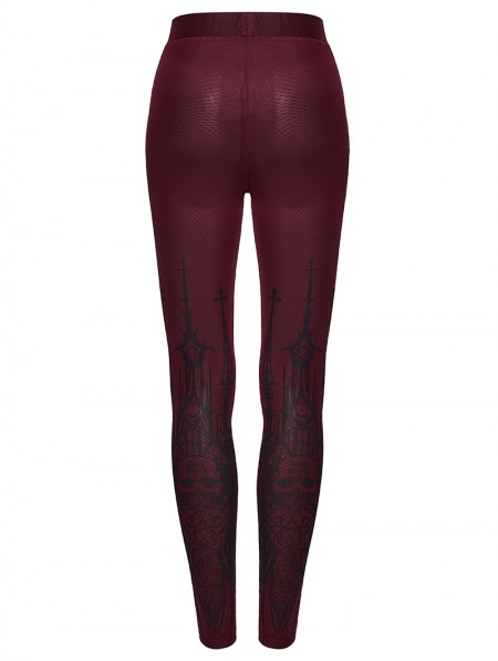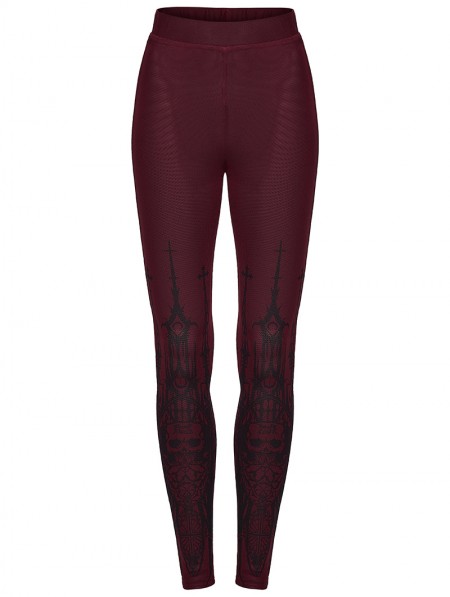 Punk Rave Red Gothic Church Skull Printed Leggings for Women