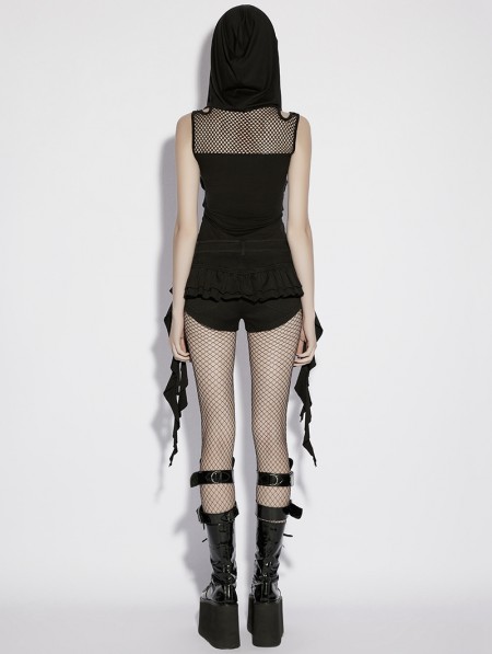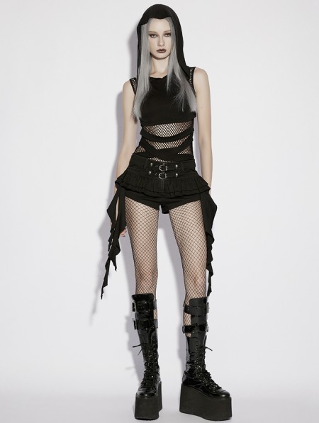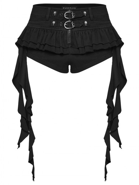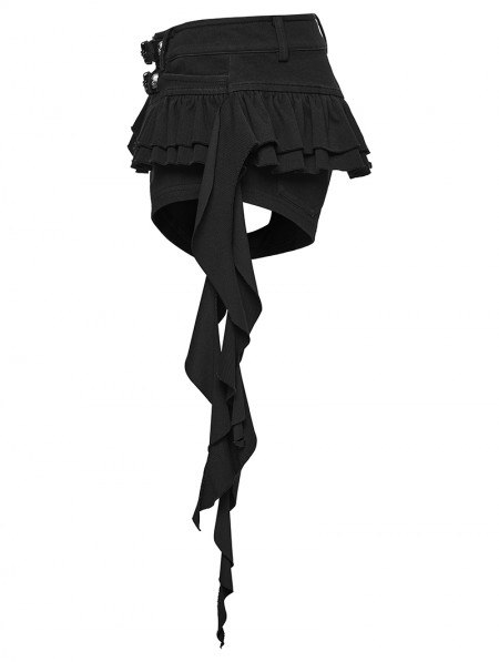 Punk Rave Black Gothic Punk Personalized Ruffled Skirt-Shorts for Women