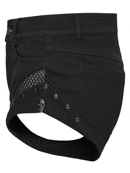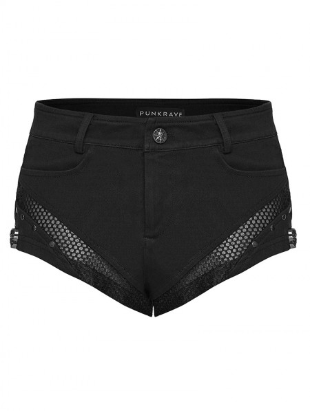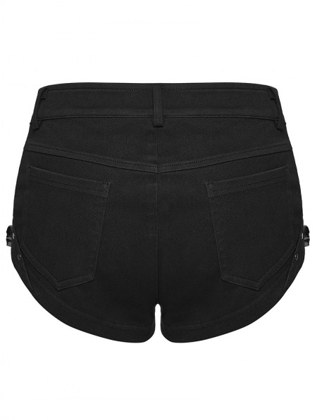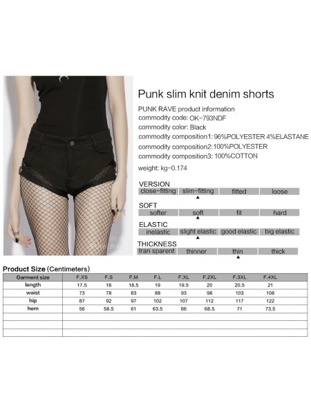 Punk Rave Black Gothic Punk Slim Knit Denim Shorts for Women