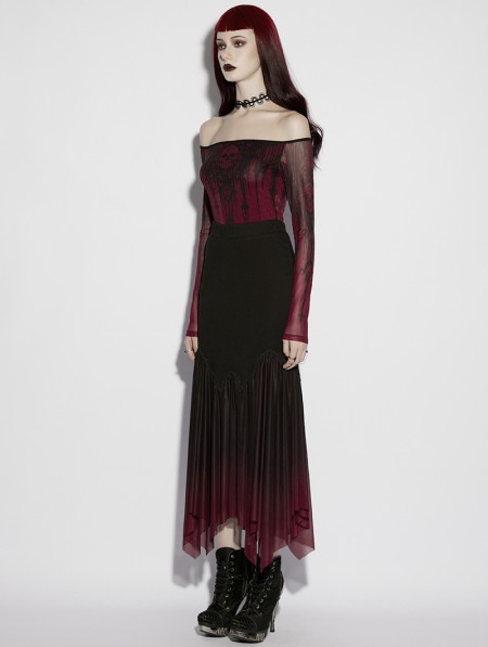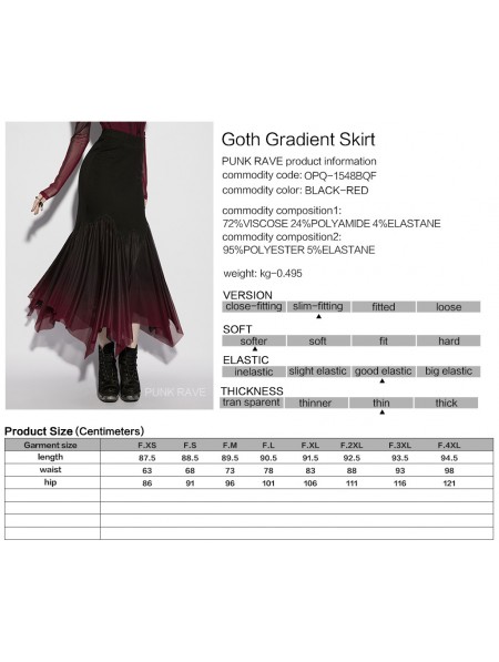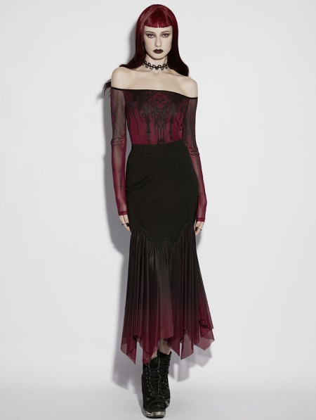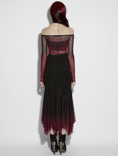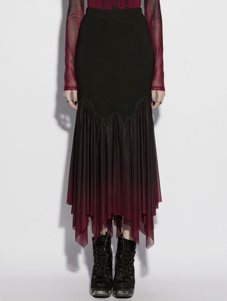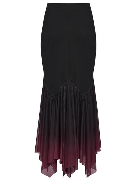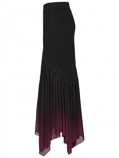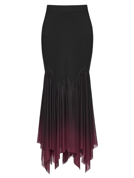Punk Rave Black and Red Gothic Gradient Irregular Fishtail Skirt
