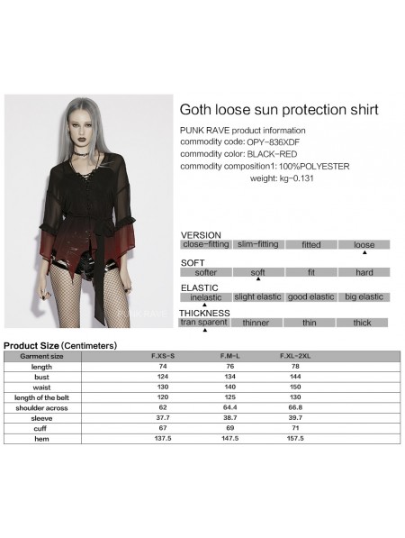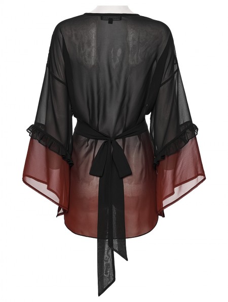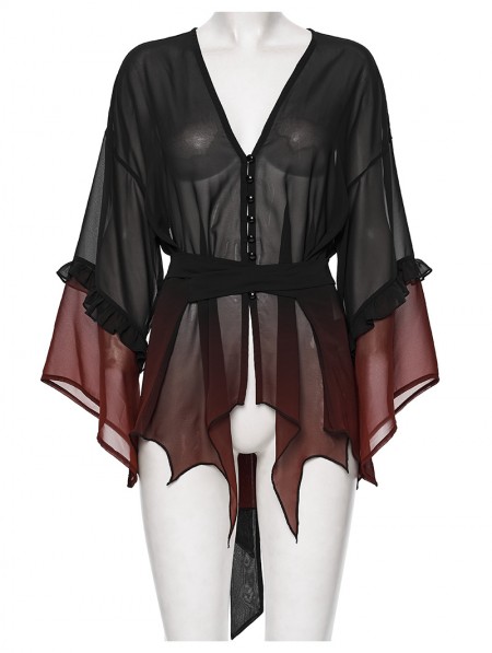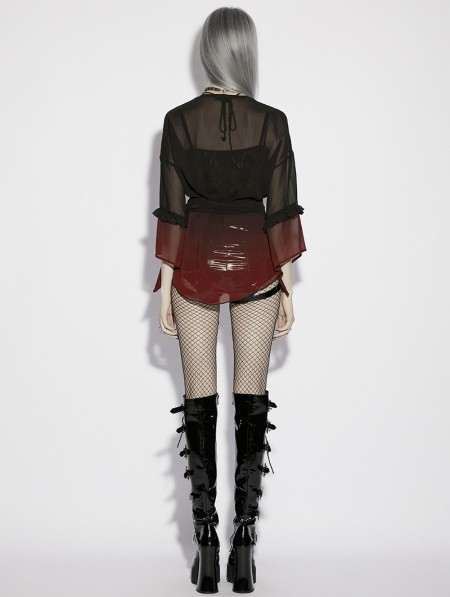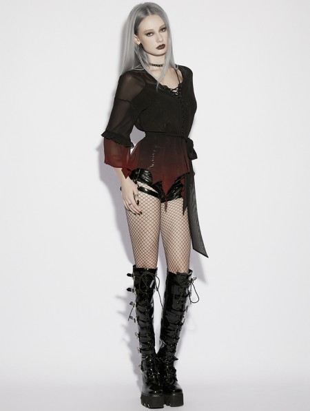 Punk Rave Black and Red Gothic Chiffon Gradient Loose Ruffle Shirt for Women
