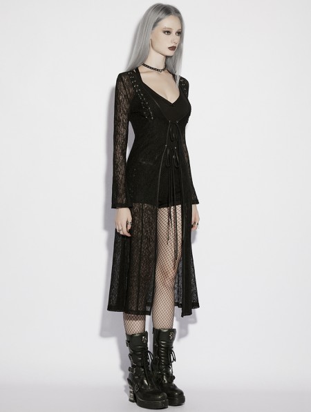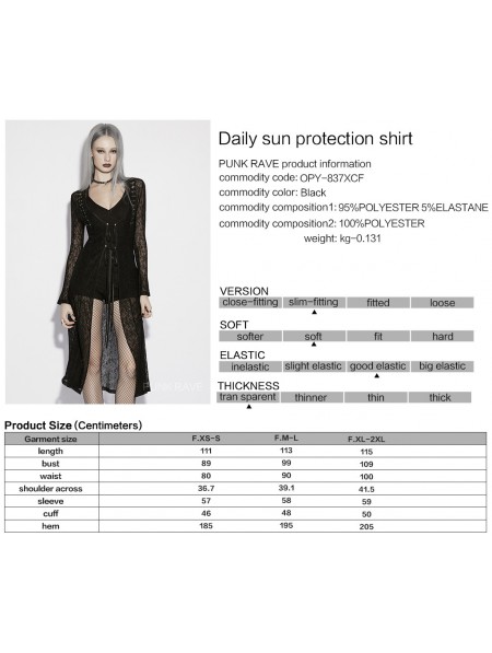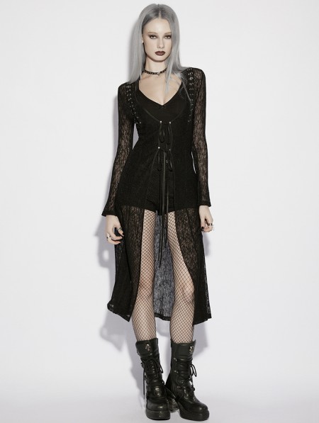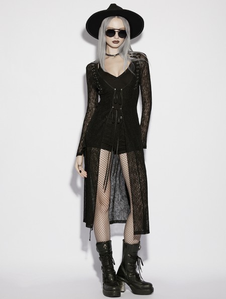 Punk Rave Black Gothic Daily Sun Protection Long Cardigan for Women