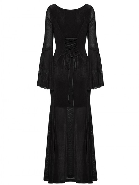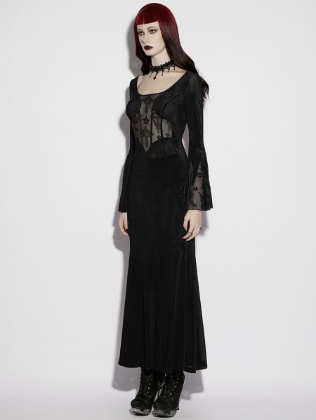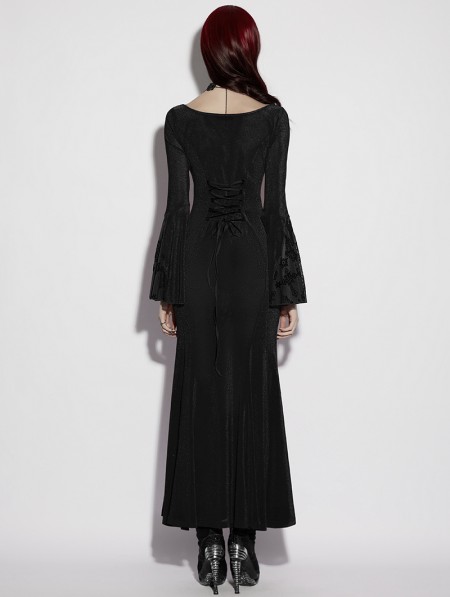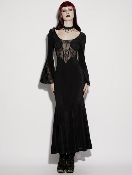 Punk Rave Black Gothic Velvet Hollow Fared Sleeve Long Fishtail Dress