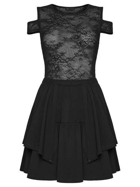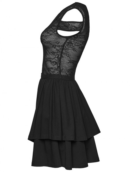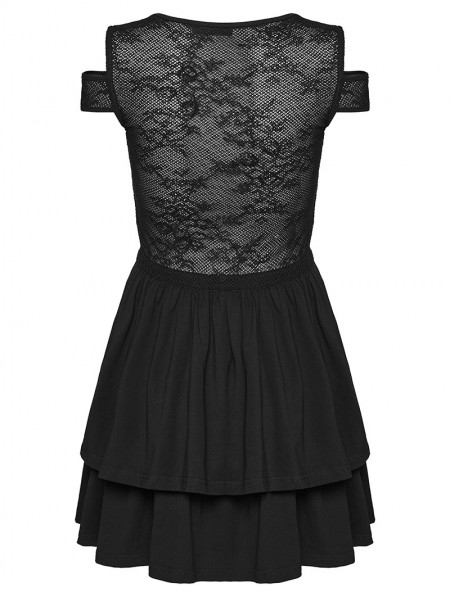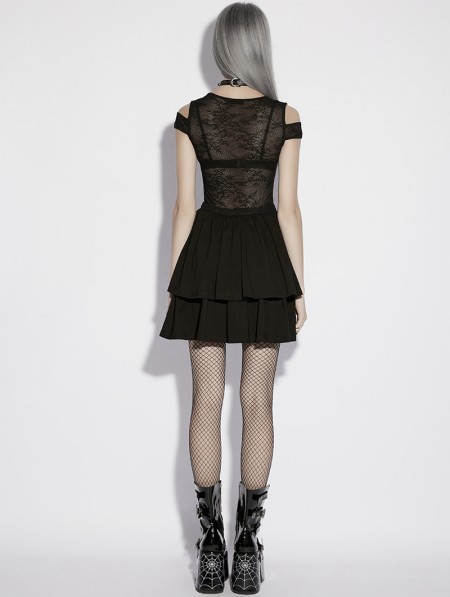 Punk Rave Black Gothic Perspective Mesh Patterned Lace Short Dress