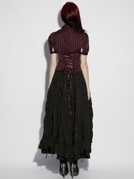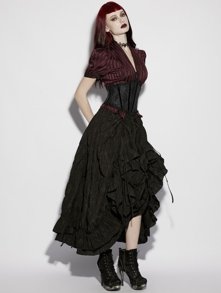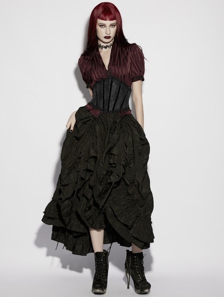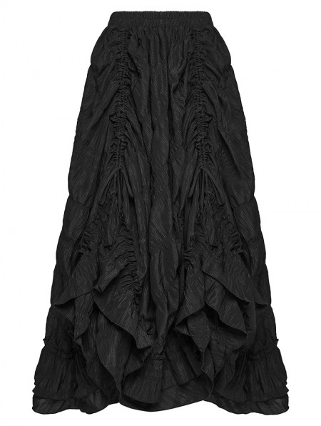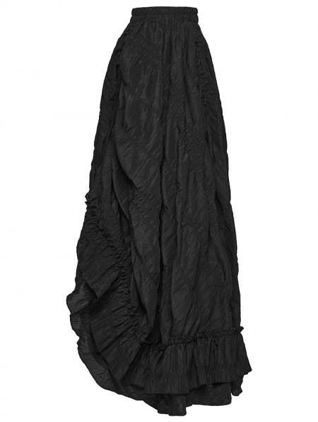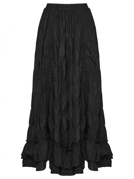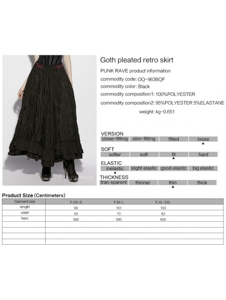 Punk Rave Black Gothic Pleated Retro Layered Maxi Skirt