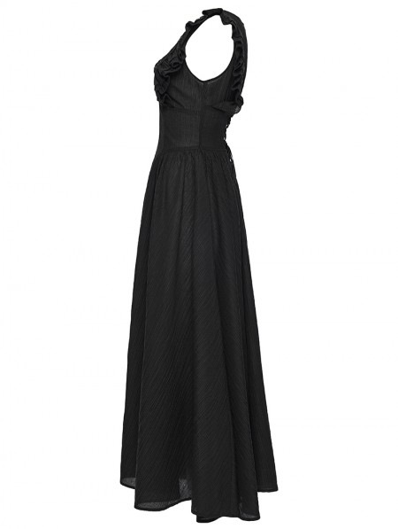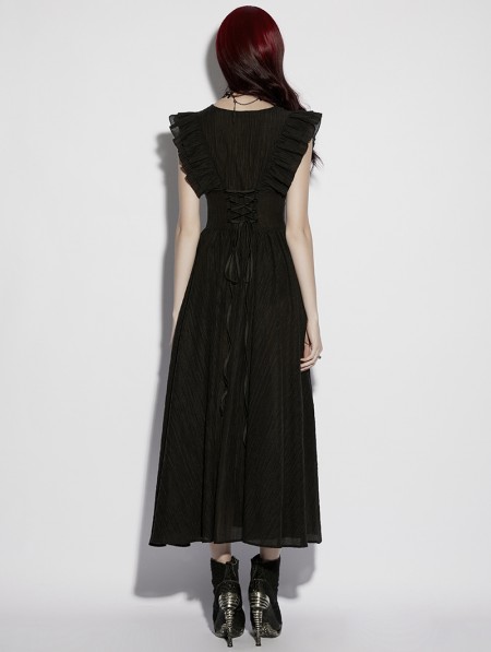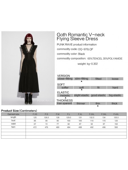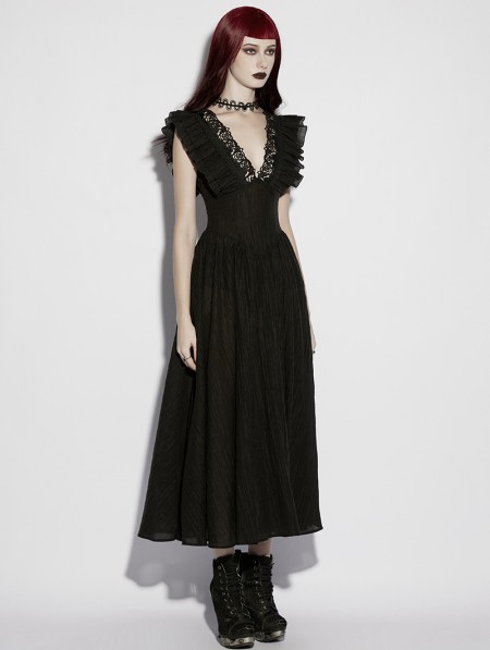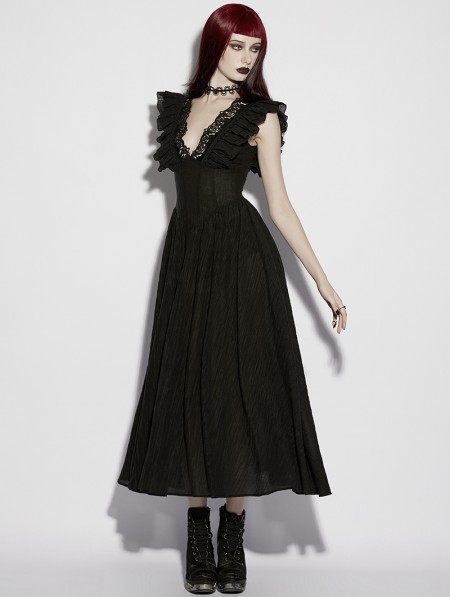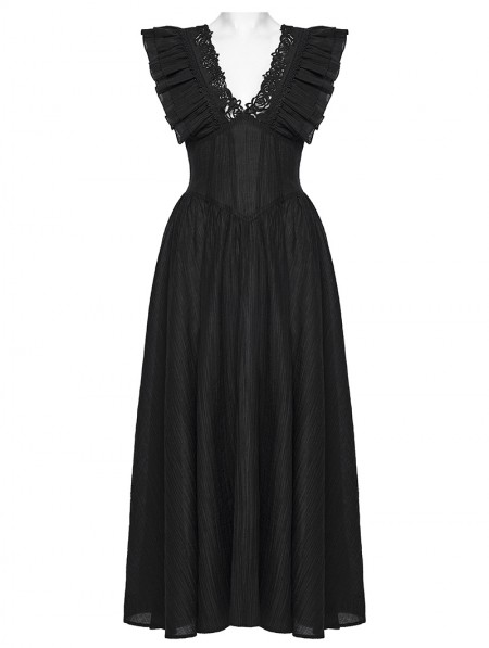 Punk Rave Black Gothic Romantic Sexy Deep V-Neck Flutter Sleeve Long Dress