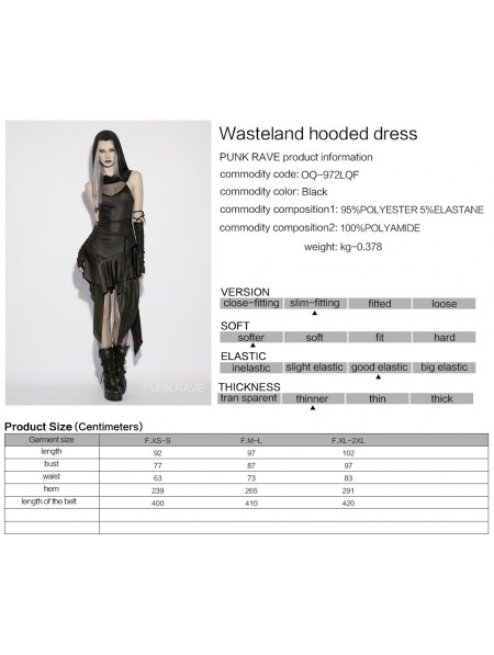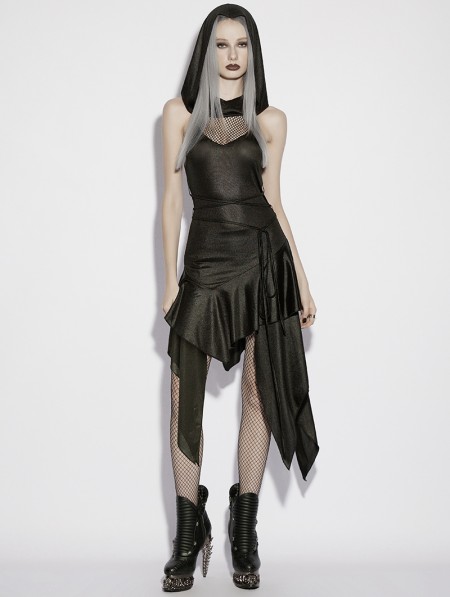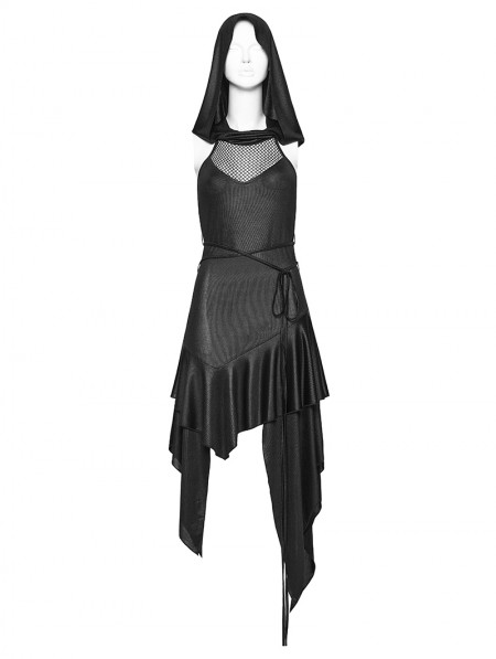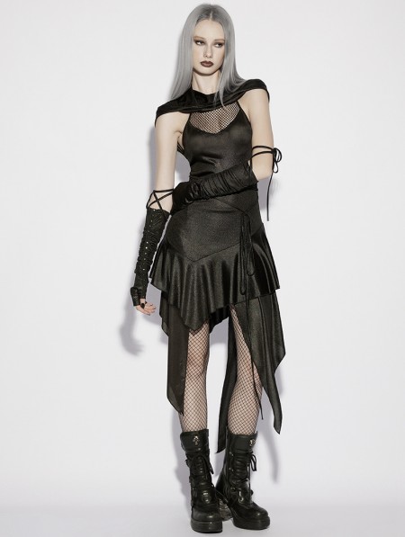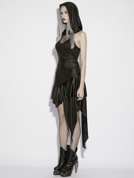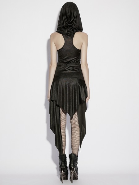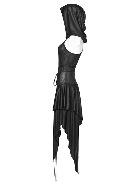 Punk Rave Black Gothic Wasteland Hooded Sleeveless Asymmetrical Dress