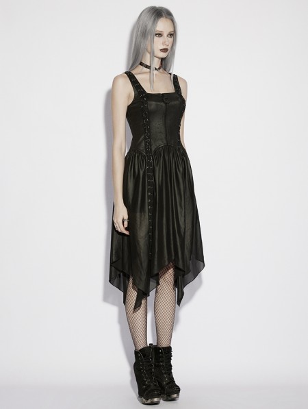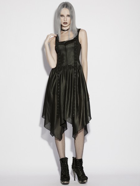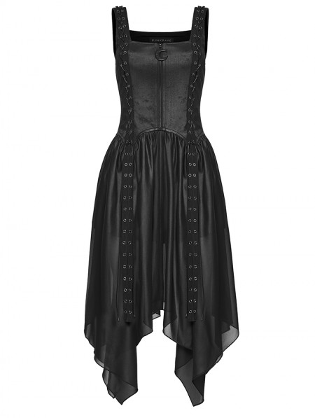 Punk Rave Black Punk Night Gothic Eyelet Irregular Dress