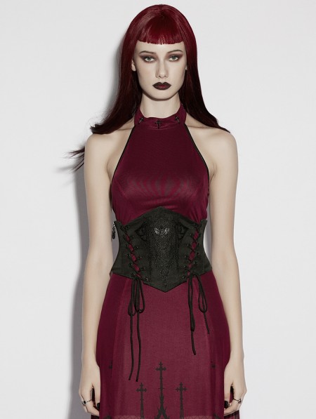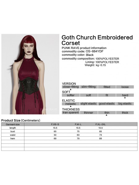 Punk Rave Black Gothic Church Embroidered Corset Waistband