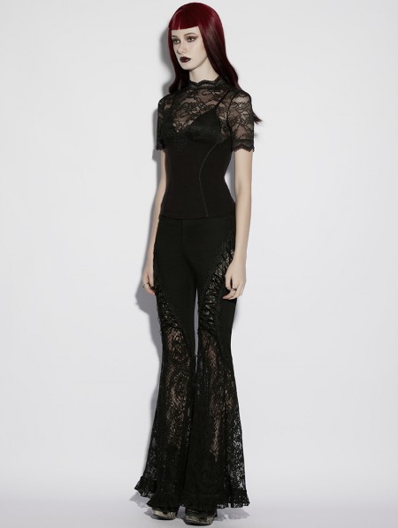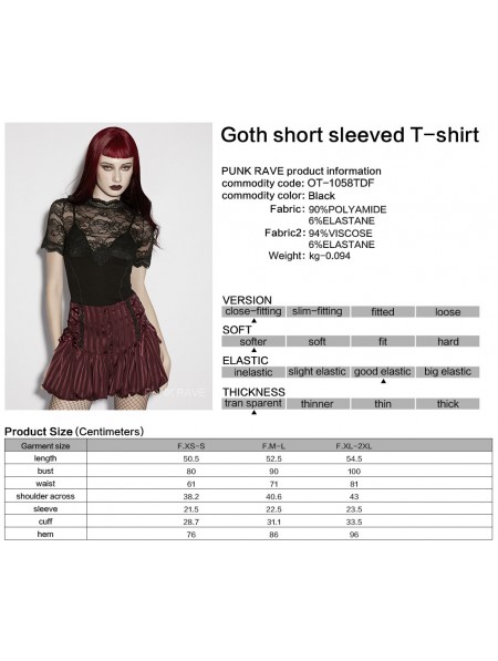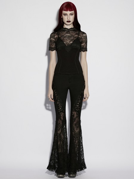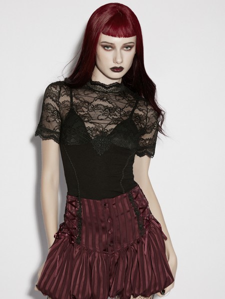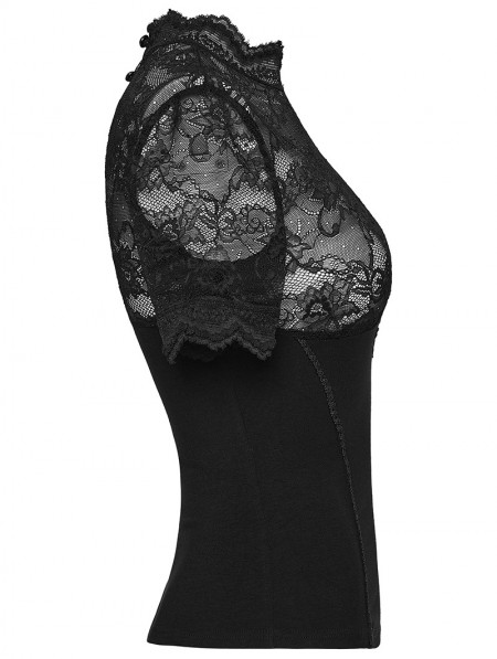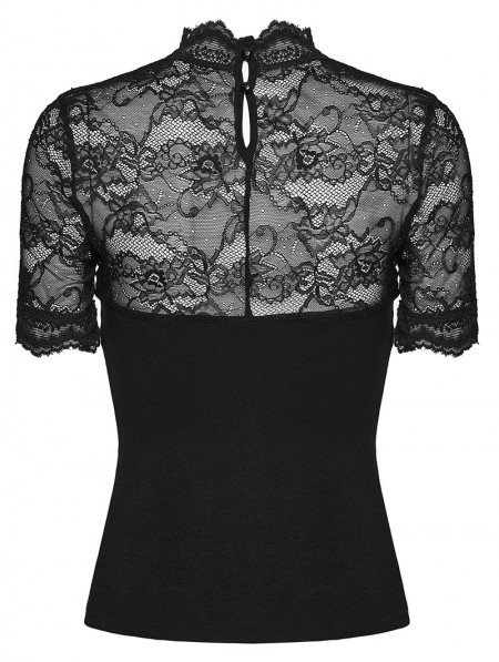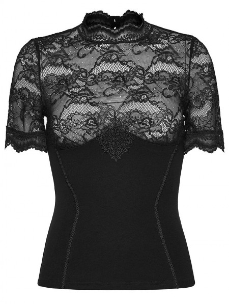 Punk Rave Black Gothic Short Sleeved Lace Shirt for Women