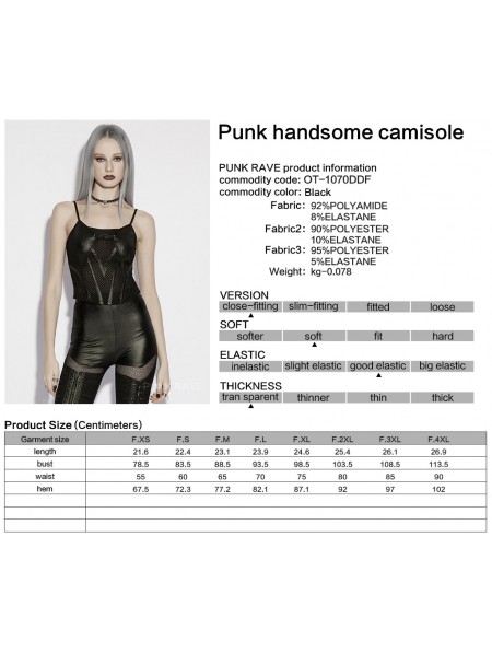 Punk Rave Black Gothic Punk Handsome Camisole Top for Women