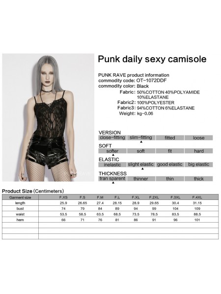 Punk Rave Black Gothic Daily Sexy Lace Camisole Top for Women
