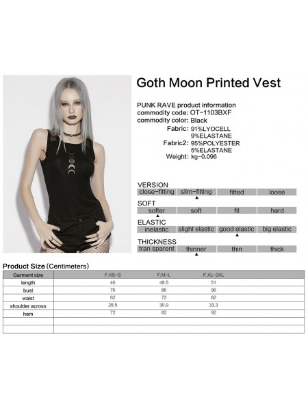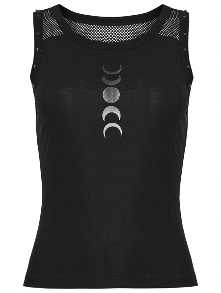 Punk Rave Black Gothic Moon Printed Vest Top for Women