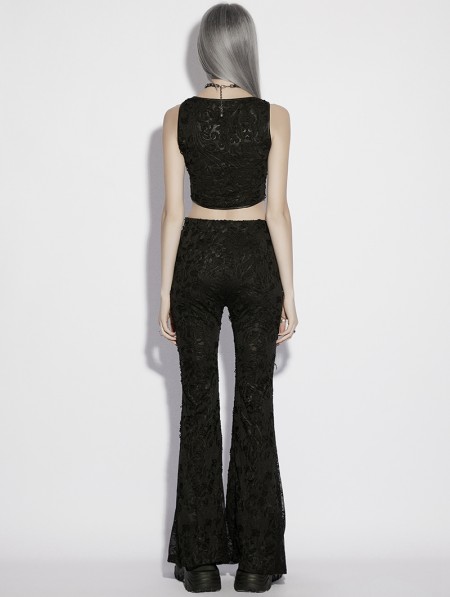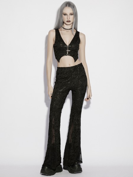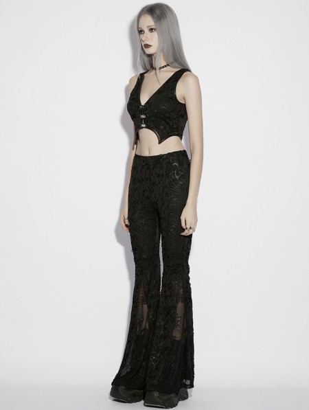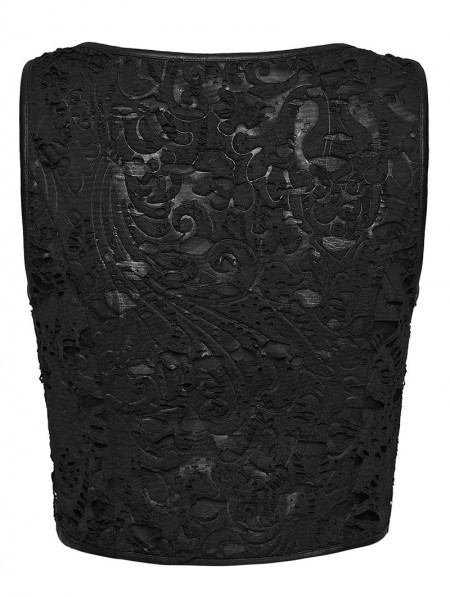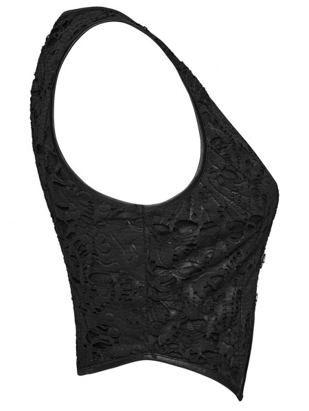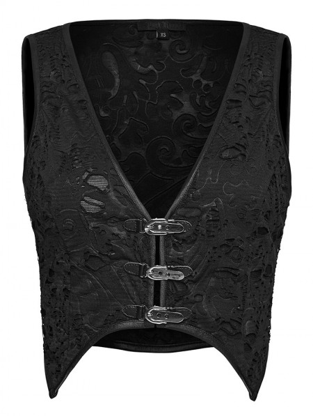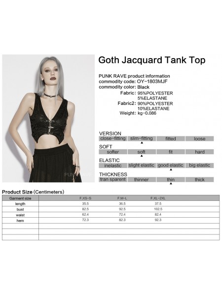 Punk Rave Black Gothic Sexy Deep V-Neck Jacquard Tank Top for Women