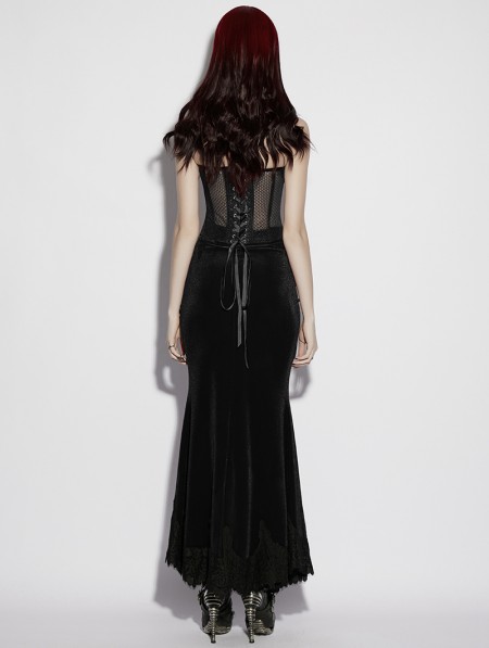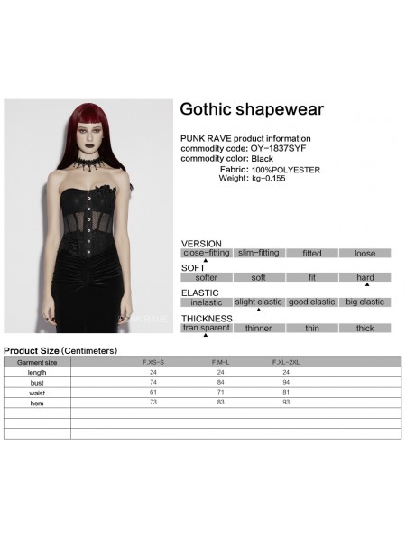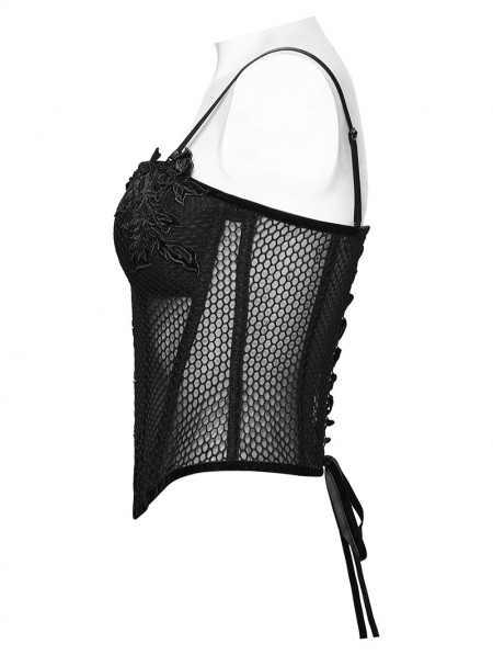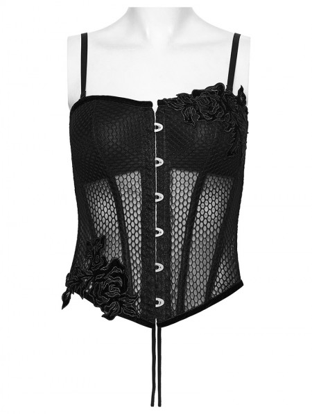 Punk Rave Black Gothic Rose Applique Mesh Corset Top for Women