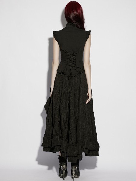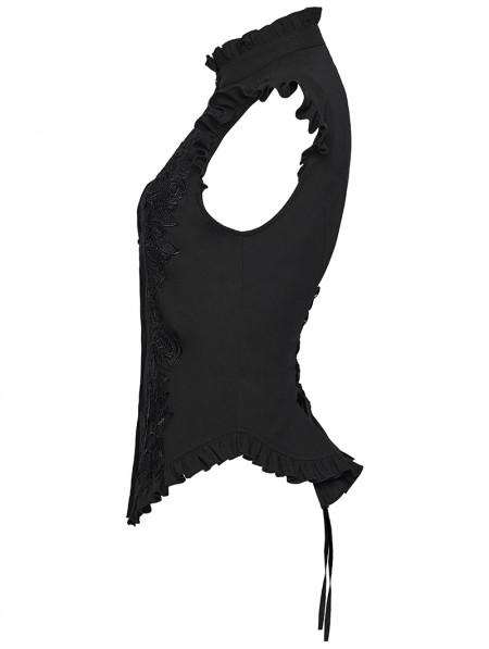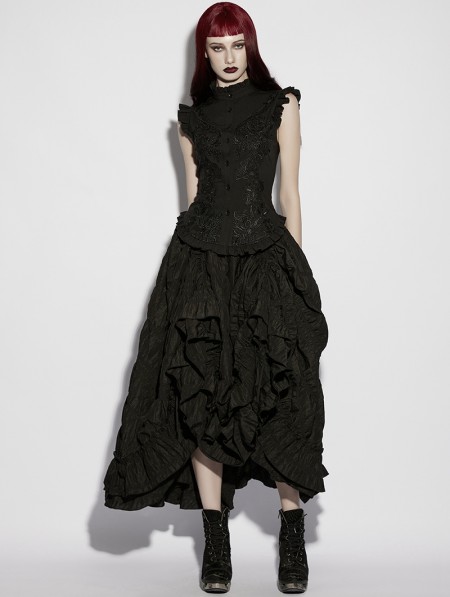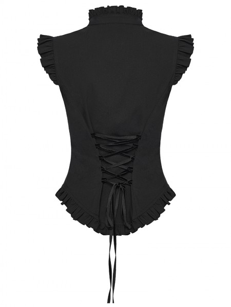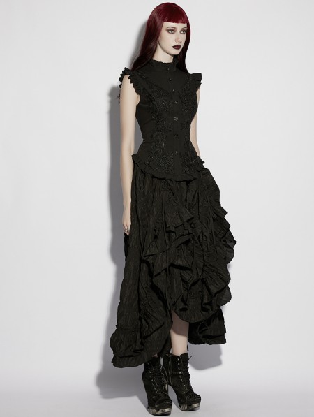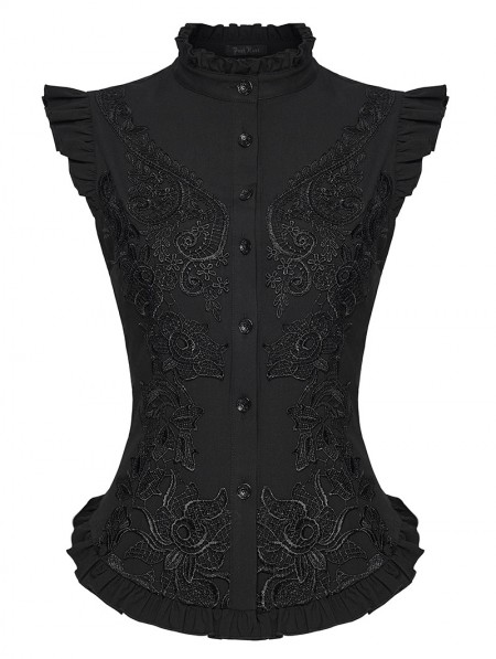 Punk Rave Black Gothic Embroidered Lace Stand Collar Shirt for Women